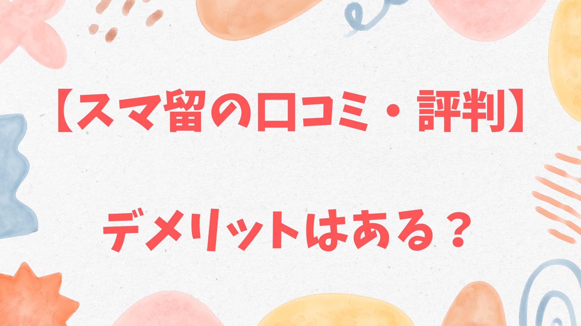 今回は、ネット上のスマ留口コミや体験談を徹底調査し、スマ留の良い評判から、申し込み前に知っておくべきデメリットまでを中立的な立場でまとめました。
